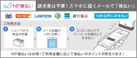 下記URLよりNP後払い利用規約及び同社のプライバシーポリシーに同意して、後払いサービスをご選択ください。